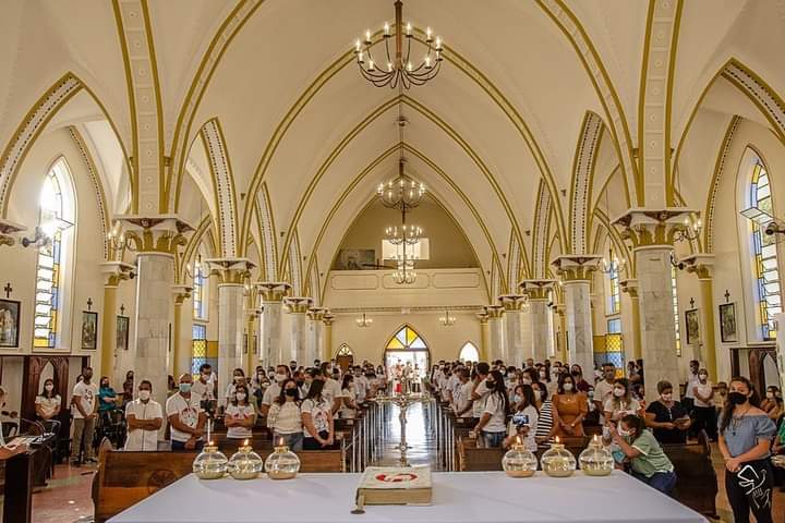 Nos dias , 21 e 22 de agosto de 2021 , a Paróquia Nossa Senhora da Piedade realizou a celebração da missa de crisma de 158 jovens e adultos , as celebrações foram realizadas pelo nosso bispo, Dom Frei Dom Claudio Nori Sturm, e concelebradas pelo pároco, Padre Antônio Carlos Paiva, e nosso vigário paroquial, Padre Víctor Lucas Alves Vitória.