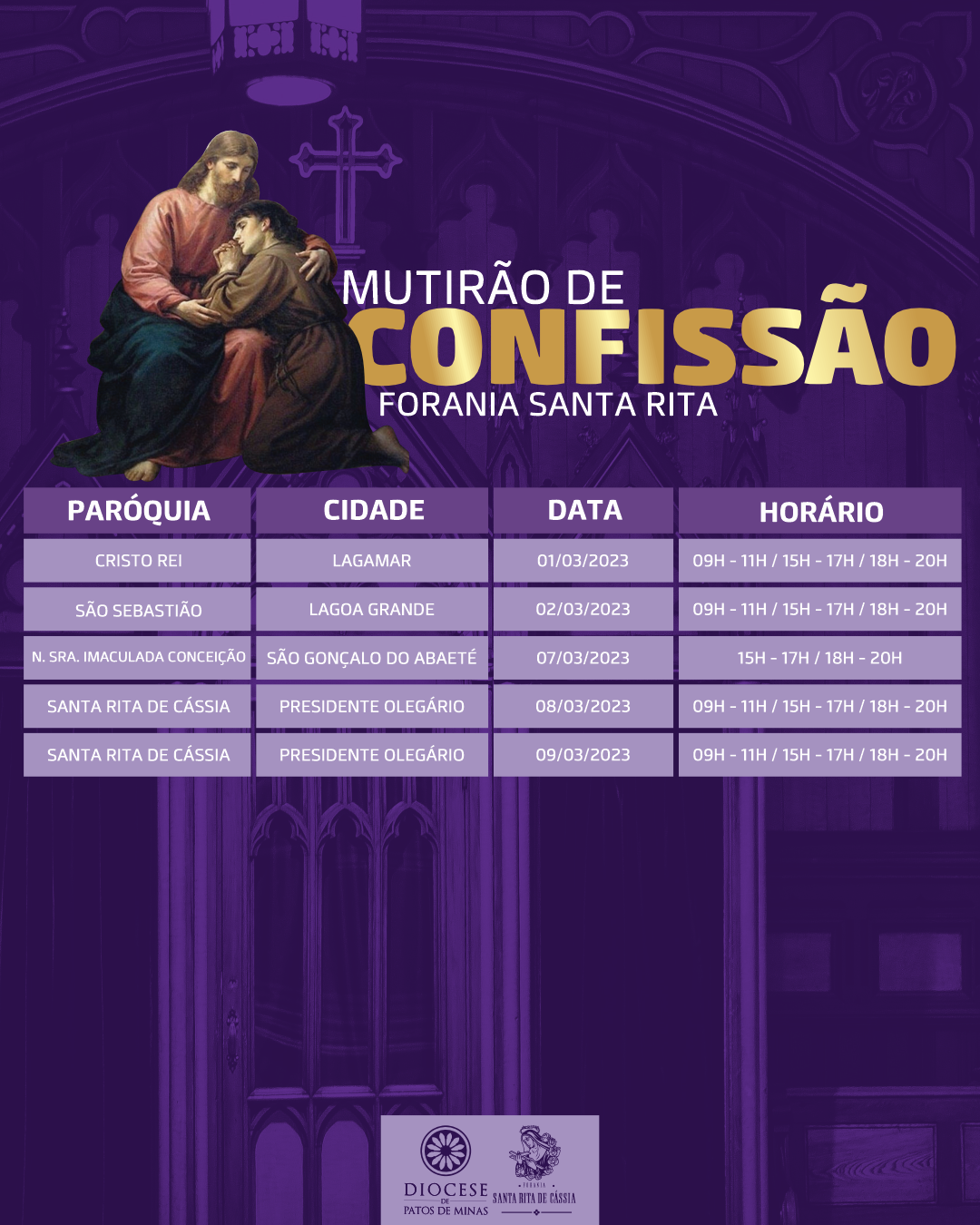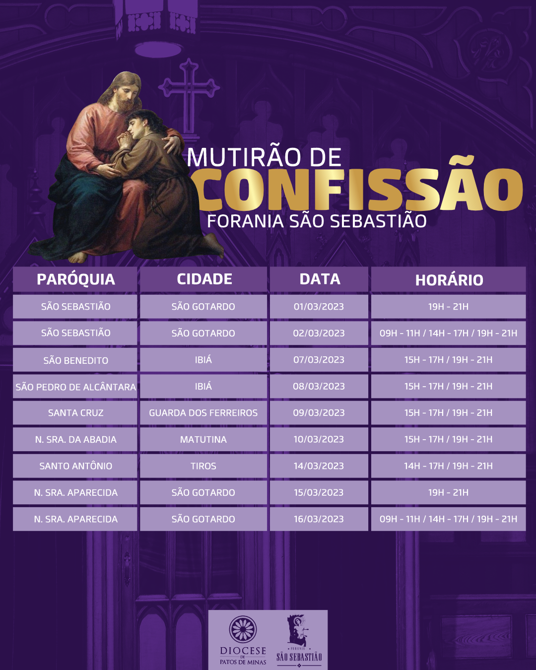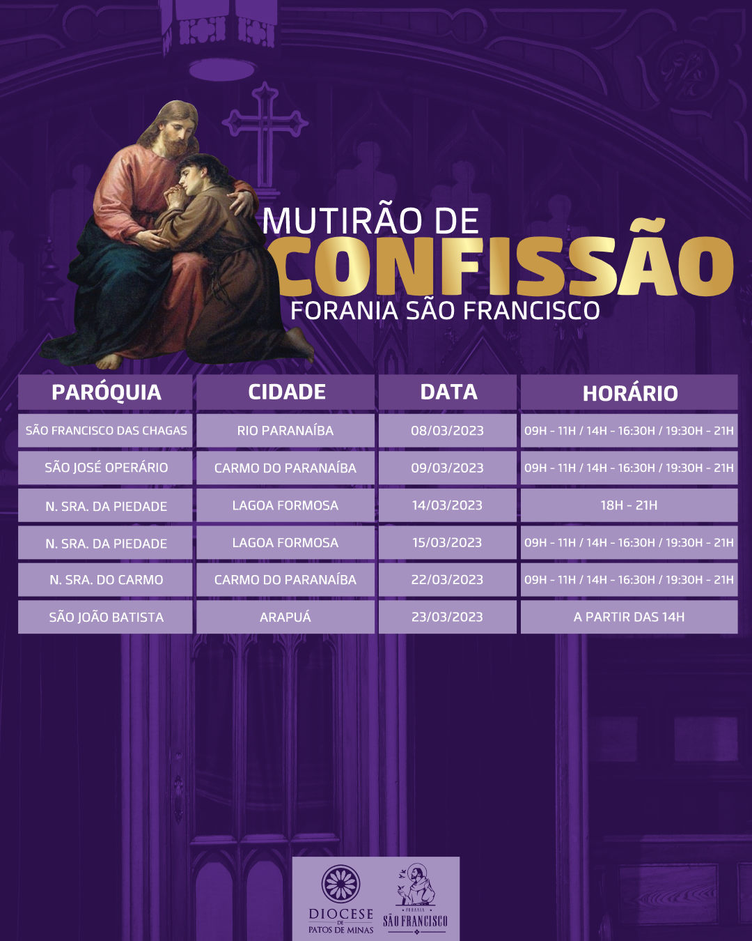 Estamos nos aproximando do tempo da quaresma, tempo de conversão. Como todos os anos, teremos o mutirão de confissões nas foranias da Diocese.