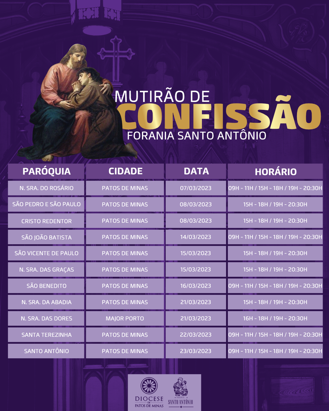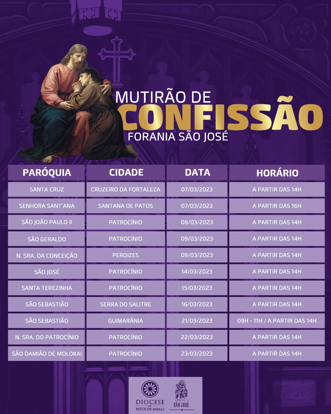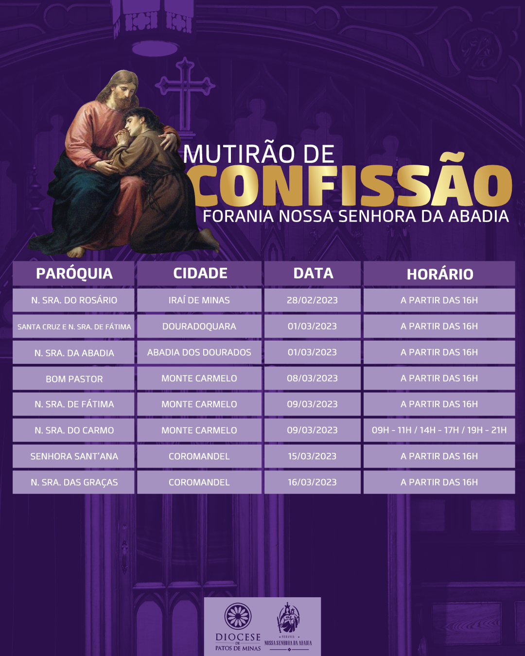 Estamos nos aproximando do tempo da quaresma, tempo de conversão. Como todos os anos, teremos o mutirão de confissões nas foranias da Diocese.